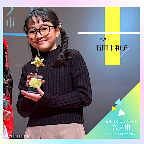 ・第9回 音ノ市の優勝者ゲストとしてゲスト歌唱出演をしていただきます。Profile:東京都出身/4歳から民謡を習い始め2025年度の民謡での全国大会で優勝(全国で行われる全国民謡大会を2つとも優勝し二冠を達成『民謡小学生日本一』『小学生民謡チャンピオン』の称号を持つ)やその他の大会などでも優勝するなど小学生にして多数経験、音ノ市でもAクラスでの小学5年生で音ノ市優勝は歴代最年少となり審査評価値も歴代最高を付けるほど審査評価の高さで今後に期待がされます。石田十和子さんの歌唱を是非お楽しみに!☆